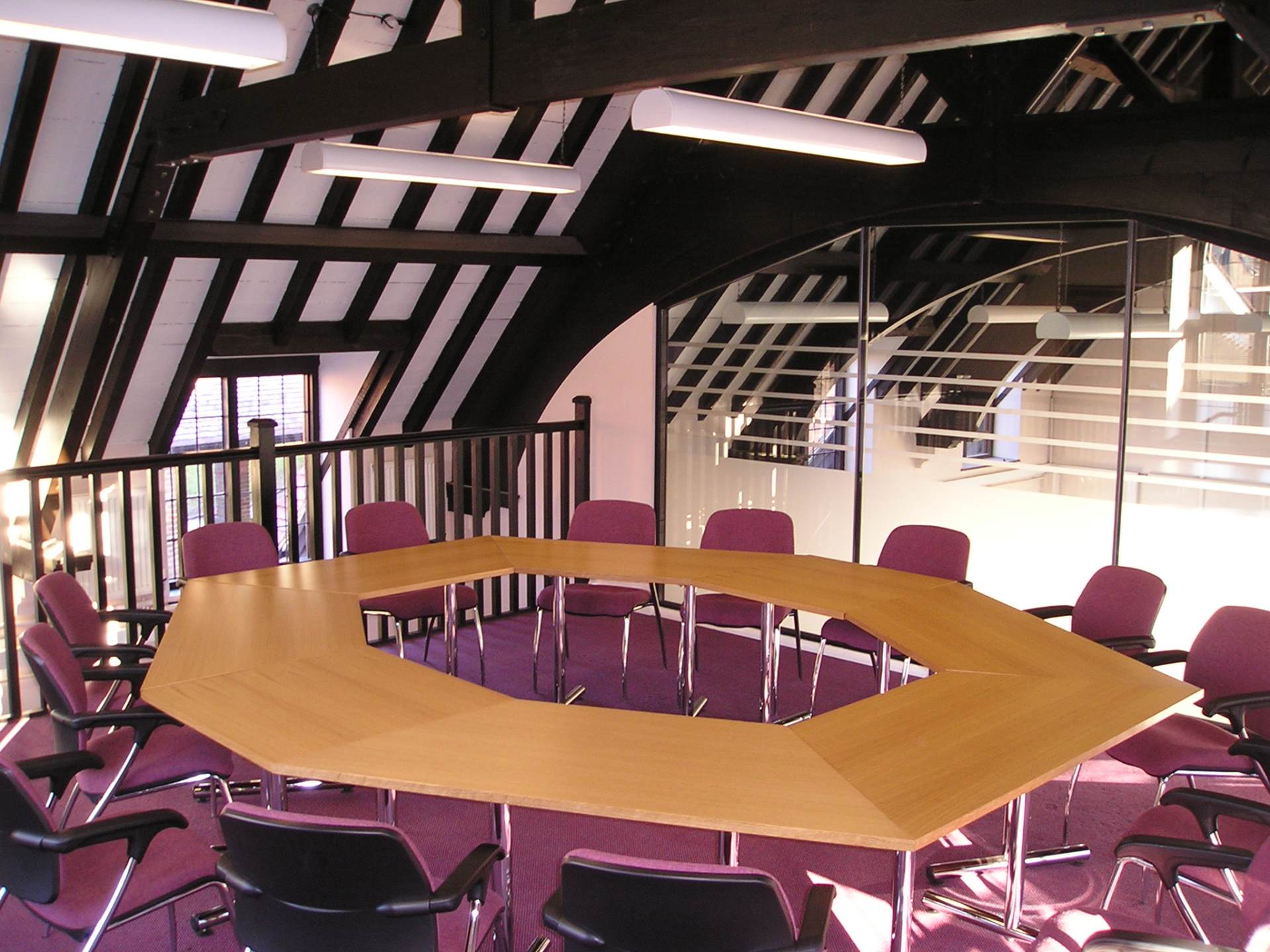 This facility is ideal for larger meetings and conferences. The table seats 18-20 people. There are IT facilities (USB ports etc) available at the table and screen presentation (projector and screen) facilities also available.