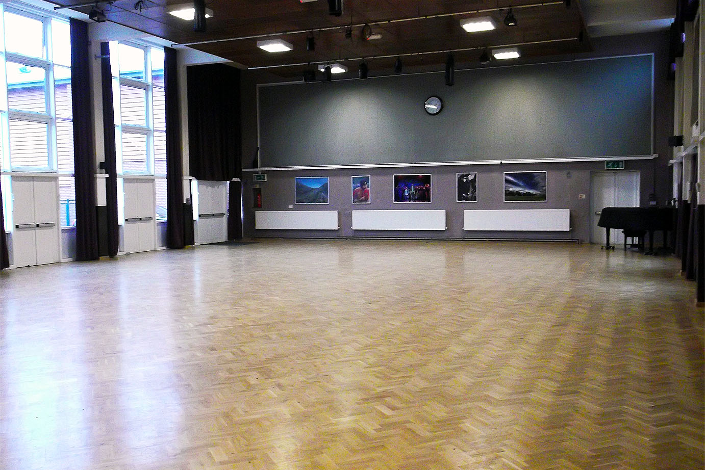 This area is ideal for dance, drama or an exercise group. There is a climbing wall in this area; for safety reasons this cannot be used.
