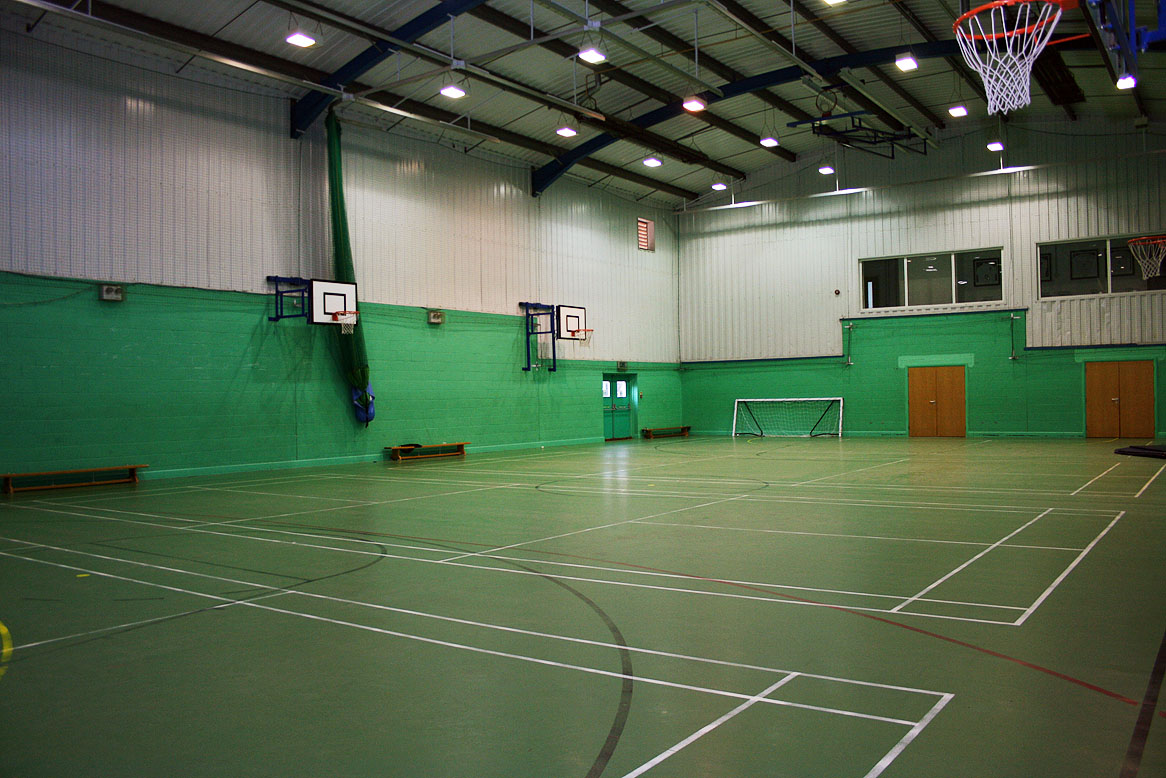 - Sports Hall - set up for cricket nets, badminton, football and netball courts