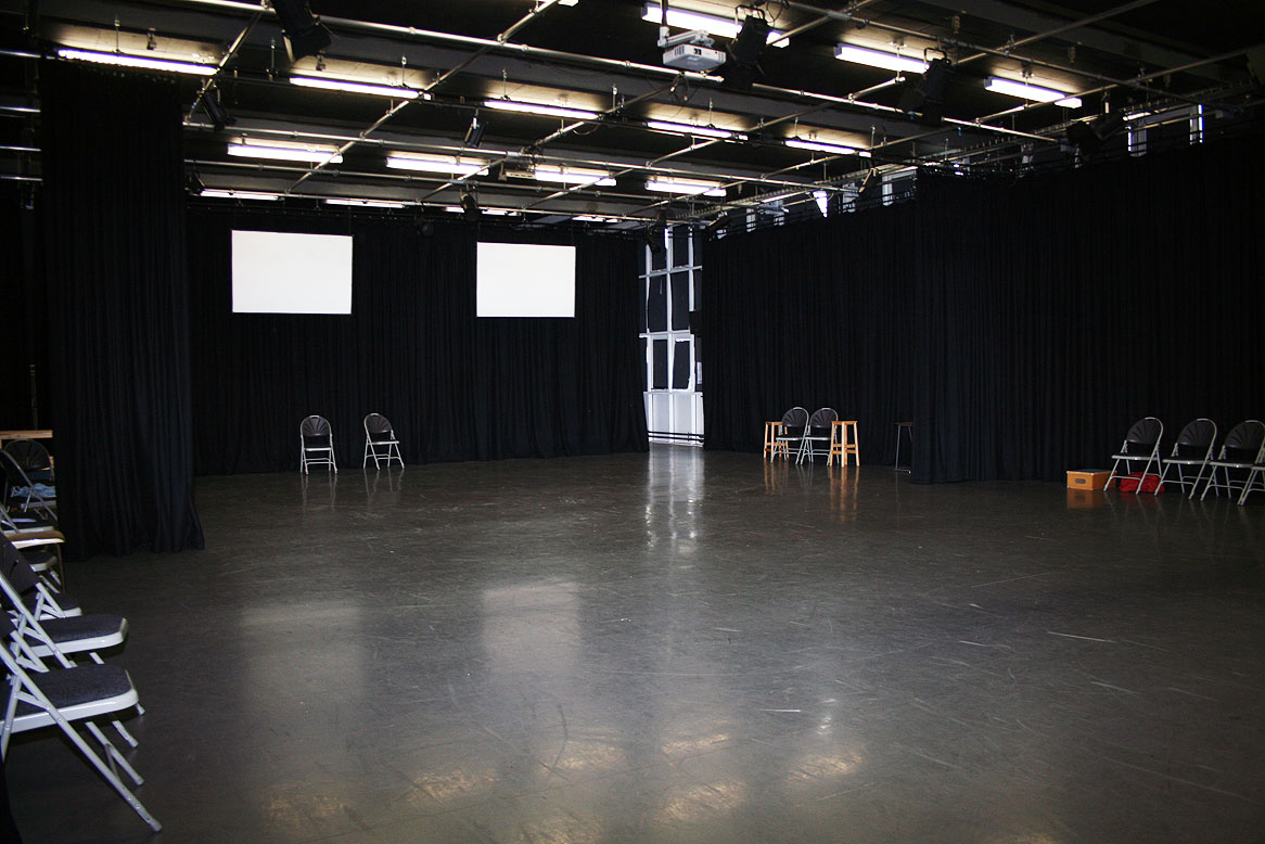 - The room can be divided into smaller areas via the black curtain approximately across the middle of the room