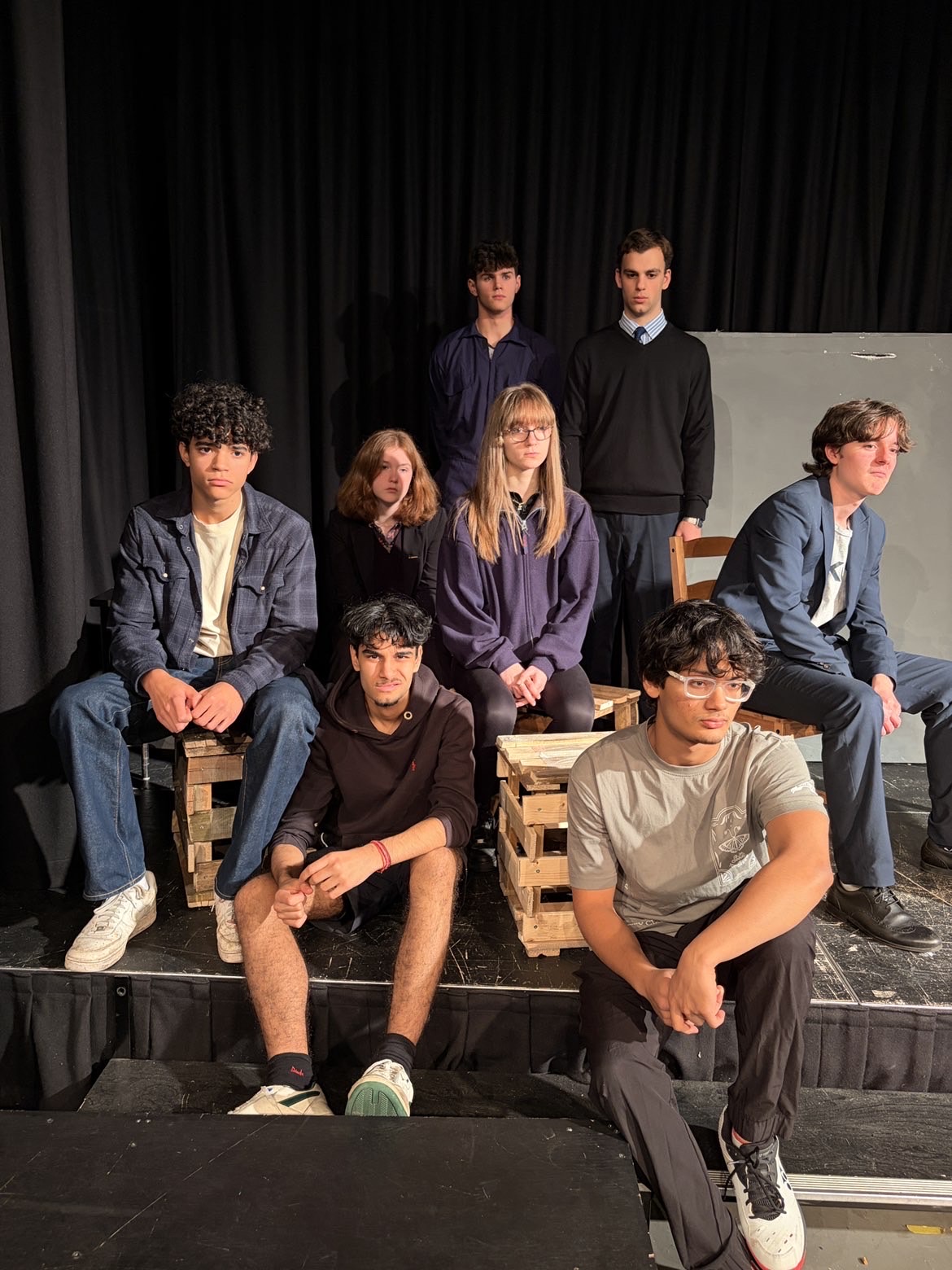 The moment the lights snapped on, the room froze. You could feel the walls closing in, the air thick with surveillance, and the tension pressing down like a living thing. Challoner’s Senior Play of 1984 didn’t just tell a story; it threw the audience straight into Orwell’s world. A bleaker, more sinister tale than preceding Challoner’s performances, this unique adaptation of the story saw the events of the novels being recreated in a prison as a method of eradicating ‘thought-crime’.