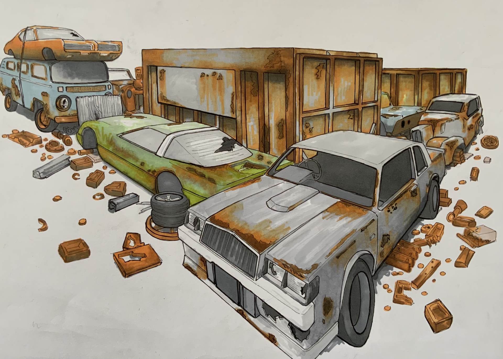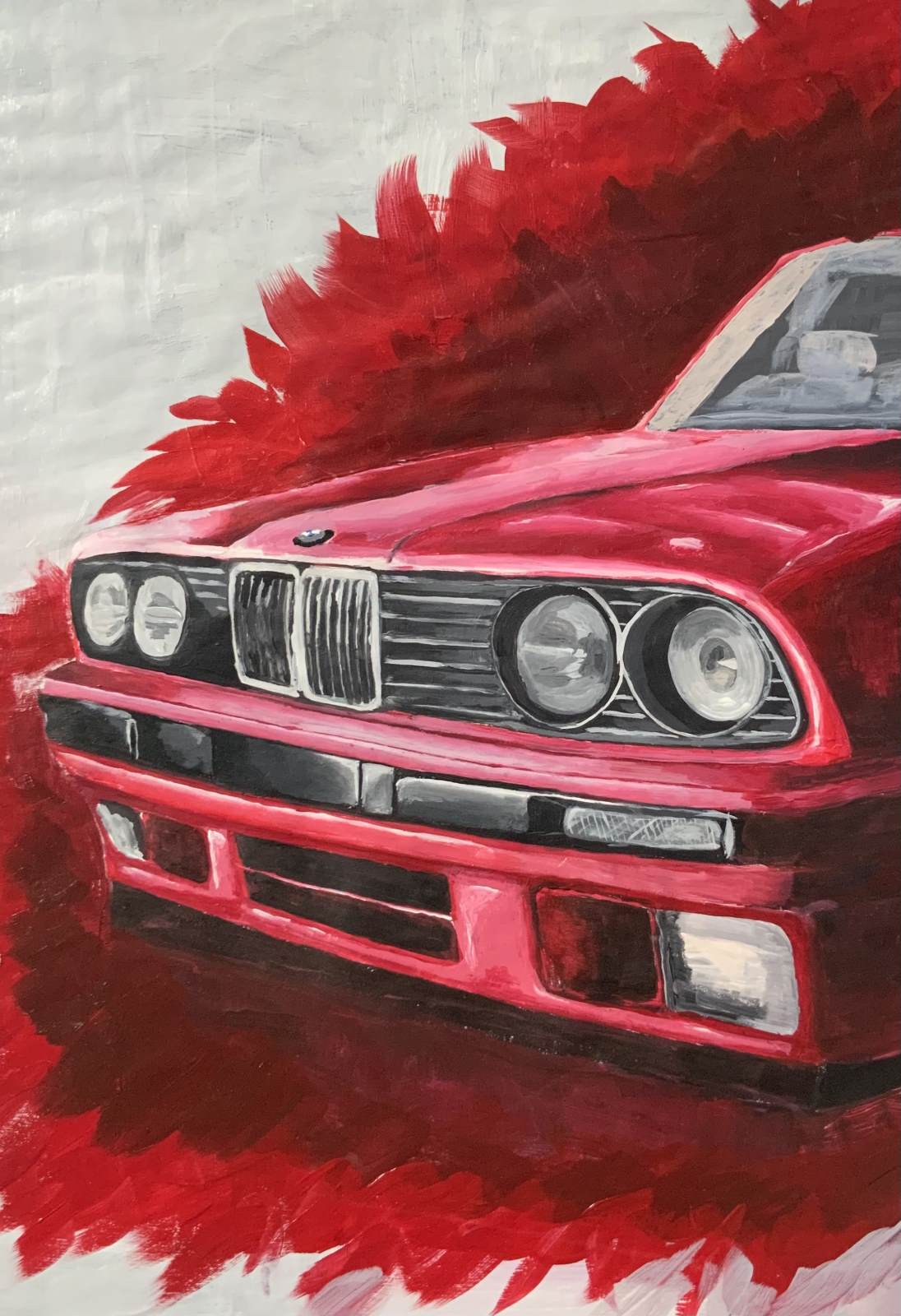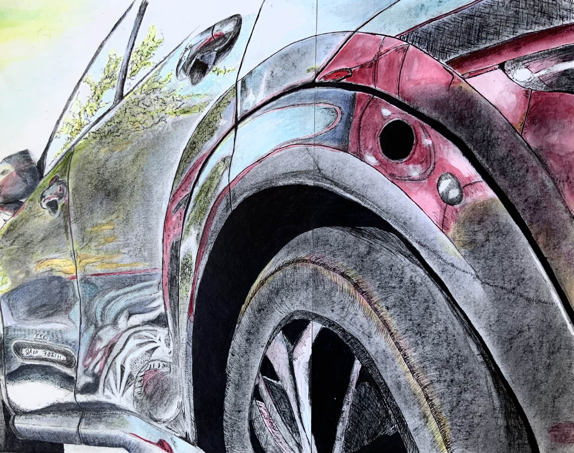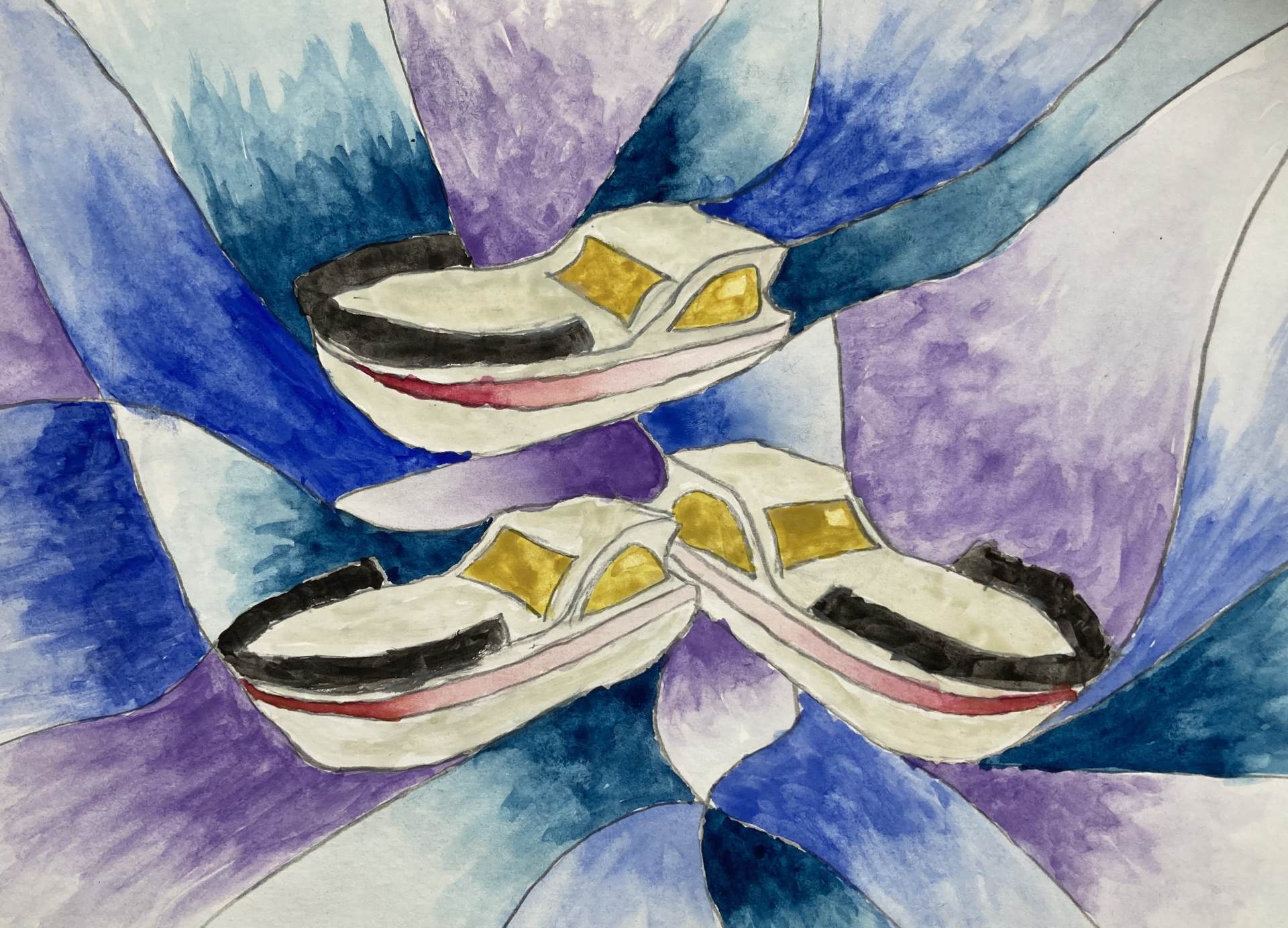 Year 8: Futurism and transport, (perspective, watercolour), Portraits (drawing, lino prints)